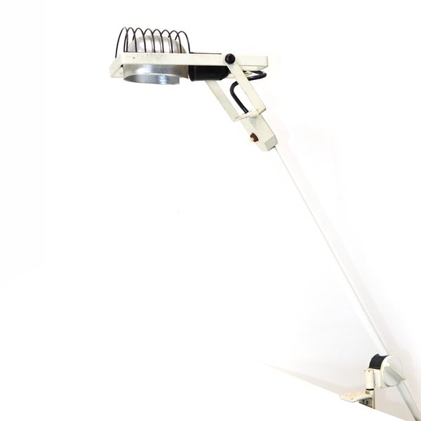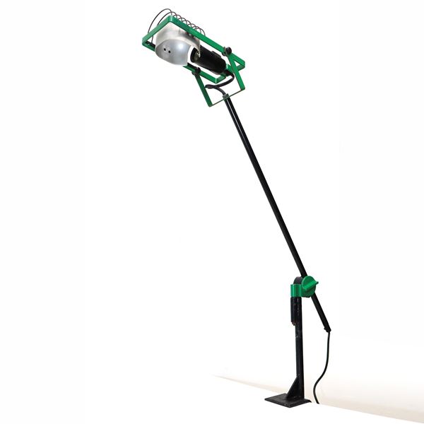 Prod. Artemide Dis. E.Gismondi. In shades of white, green and orange. Lacquered metal structure and aluminum diffuser, signs of use. Manufacturer label, to be re-electrified
