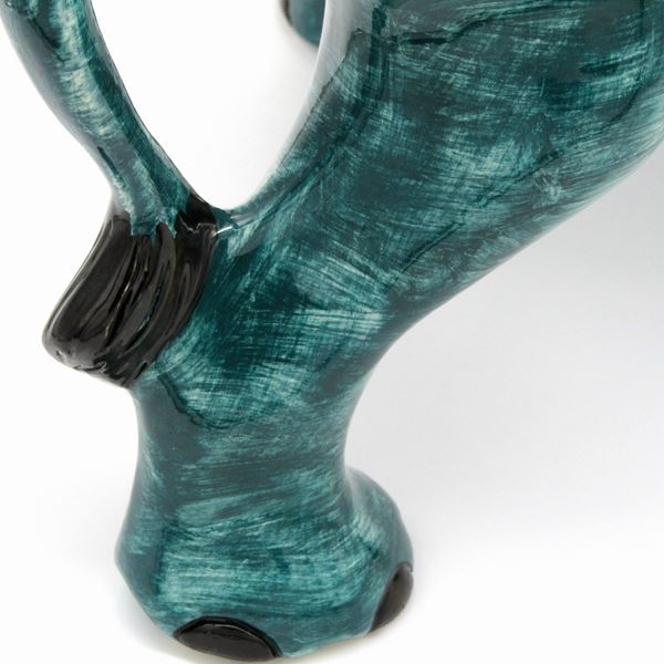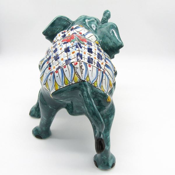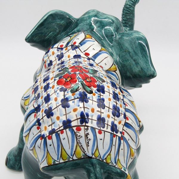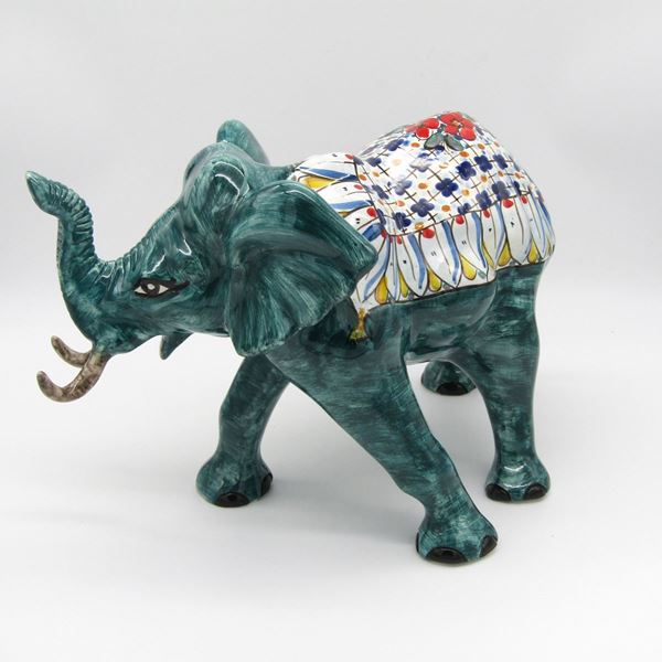 Imposing and refined, with an emerald color, it gives the impression of being in oxidized bronze. The elephant symbol of wisdom, foresight, is considered a good luck charm, for the most demanding it must have its trunk up, to be such. Vivid and bright colours, with streaks, glossy enamel that shines in the light.