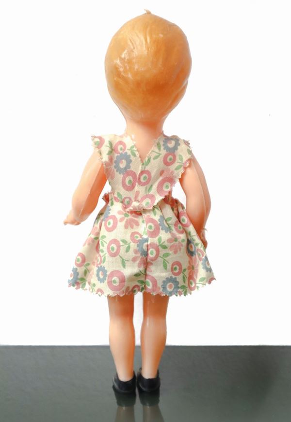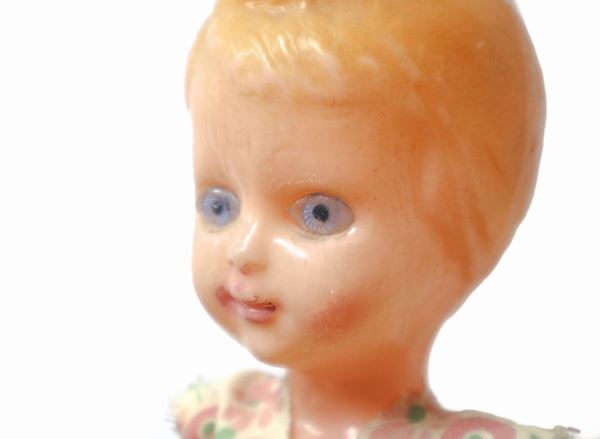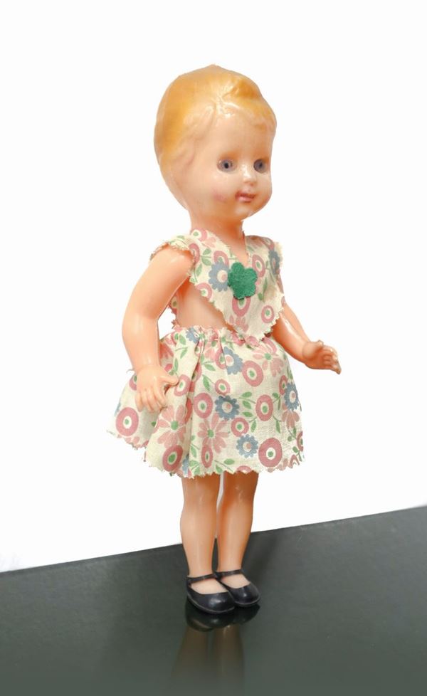 Acrylic eyes, fabric dress, articulated, with normal signs of use