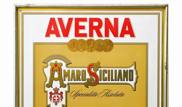 With the inscription ''Amaro siciliano absolute specialty since 1868 Fratelli Averna''. Table on enamelled metal.