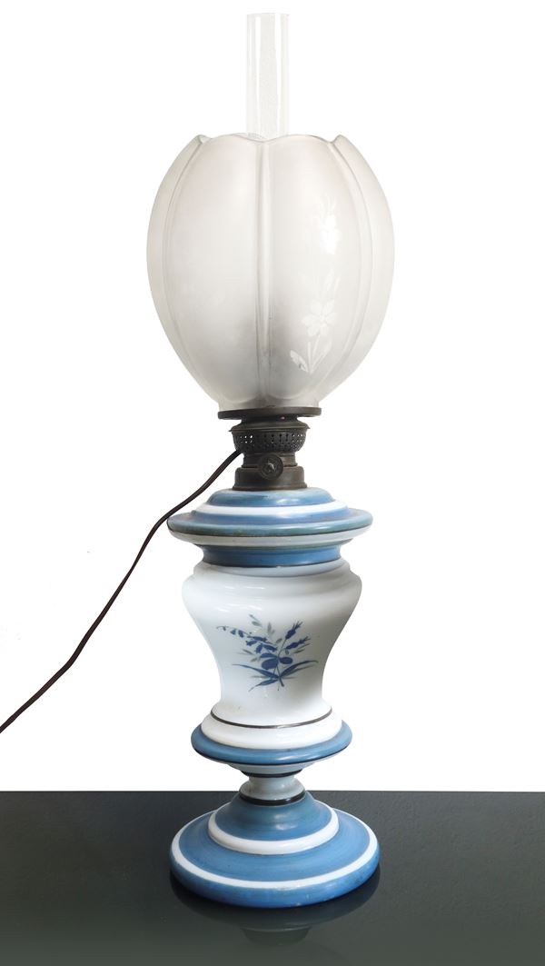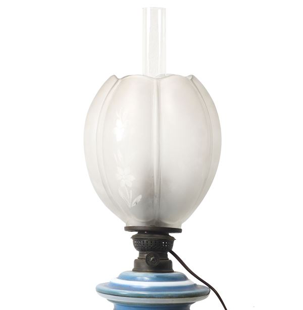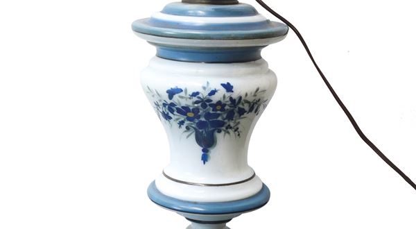 Blue and white porcelain oil lamp with floral motifs, 20th century