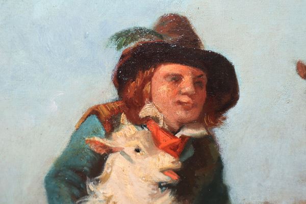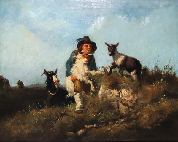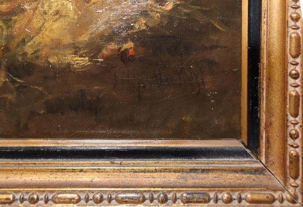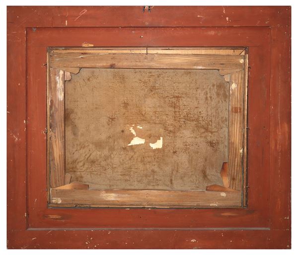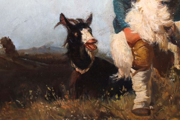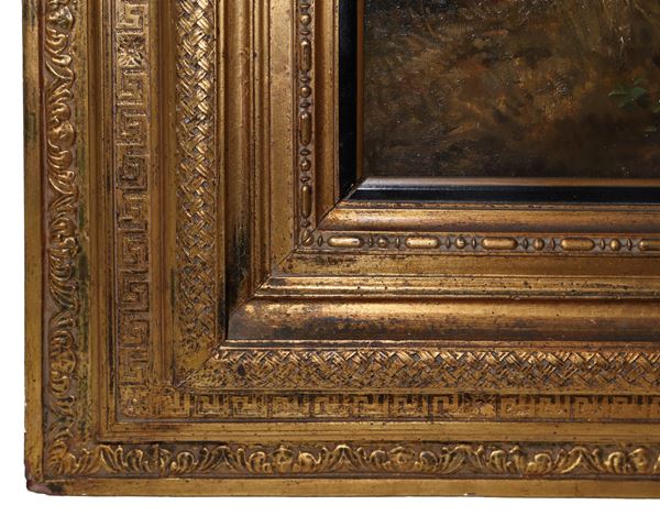 Signed lower right. "With Filippo Palizzi we have the first beginning of pictorial realism. After the school of Posillipo the observation of reality becomes the object of pictorial speculation. Since the 1950s he has been interested in photography which he practices with in-depth technical knowledge. He used the photos that he himself developed, as observation and models for his paintings.In this way he developed an immediate and direct naturalism, referring to the Flemish animal school of the seventeenth century, but he pays much more attention to details, combining neoclassical dignity with genre painting of costumes popular. His trip to Europe and to Paris (1955) allowed him to perfect his luministic investigation. On his return he stayed in Florence. Here he met Giovanni Fattori and the Macchiaioli. He affirmed that what one must look for in modern painting are the finesse and the totality, with these concepts Palizzi defines his poetics which is based on his personal conception of the "stain" meaning that the "totality" it had to be the expression of the whole, of the whole of the stain which had to be completed by the refinements, or by the rendering of the perceptive subtleties. The chiaroscuro landscapes had to undergo meticulous attention, of a micrographic nature to the effects of light and had to be created with the tip of the brush to finally express the totality of the work. The painting in question is a typical example of this pictorial conception. Final product of what he himself called a cosmic naturalism." STUDIO ASOR