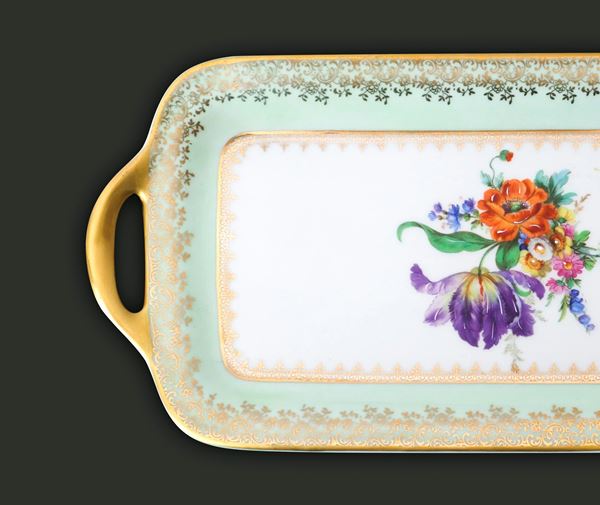 Gilded tray with polychrome flowers