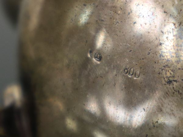 tray gr.350 cm 32x23; coffee pot 458 g, 18 cm; sugar bowl 190 g, 10 cm; milk jug 180 cm 10; total kg.1178