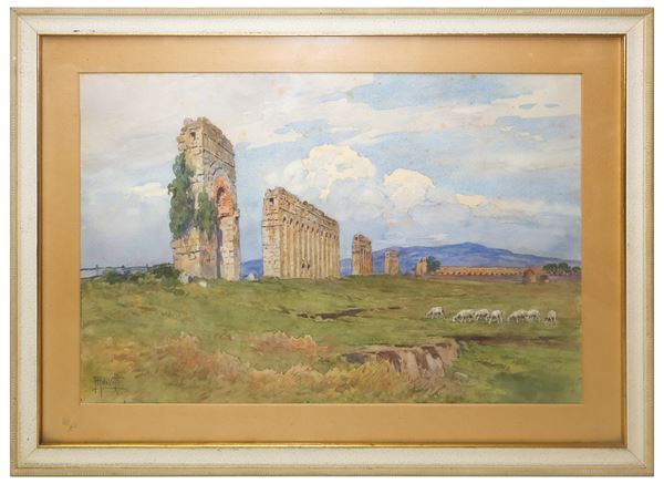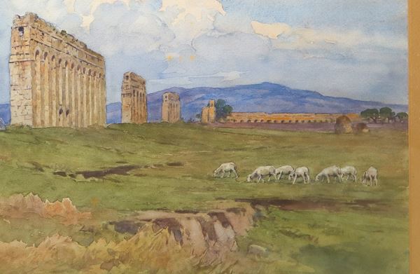 Landscape with Roman ruins and grazing flock, Early 20th century
