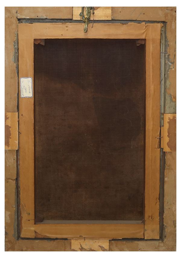 H cm 73 x 48, in carved and gilded wooden frame h cm 86 x 60