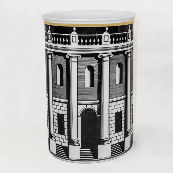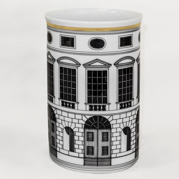 2 porcelain vases, Palladiana decoration. Piero Fornasetti for Rosenthal