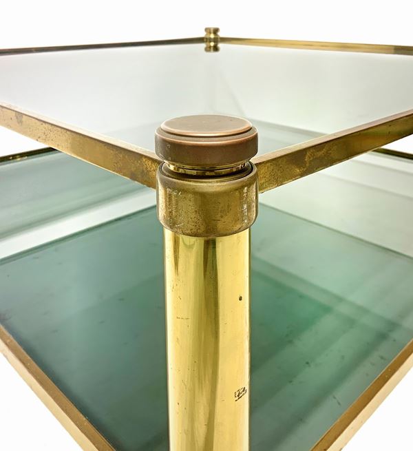 Golden brass structure, black glass top. Signs of use present.