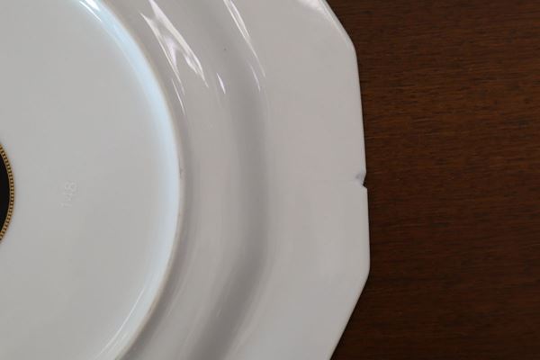 Consisting of 12 flat plates, 12 soup plates, 12 fruit plates (minimum chipping on a fruit plate).