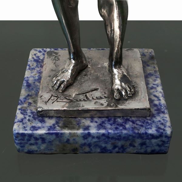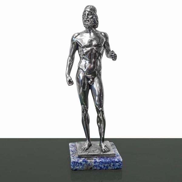 Two figures portraying the Riace bronzes, in silver bath, sculptor A. Santini., 20th century