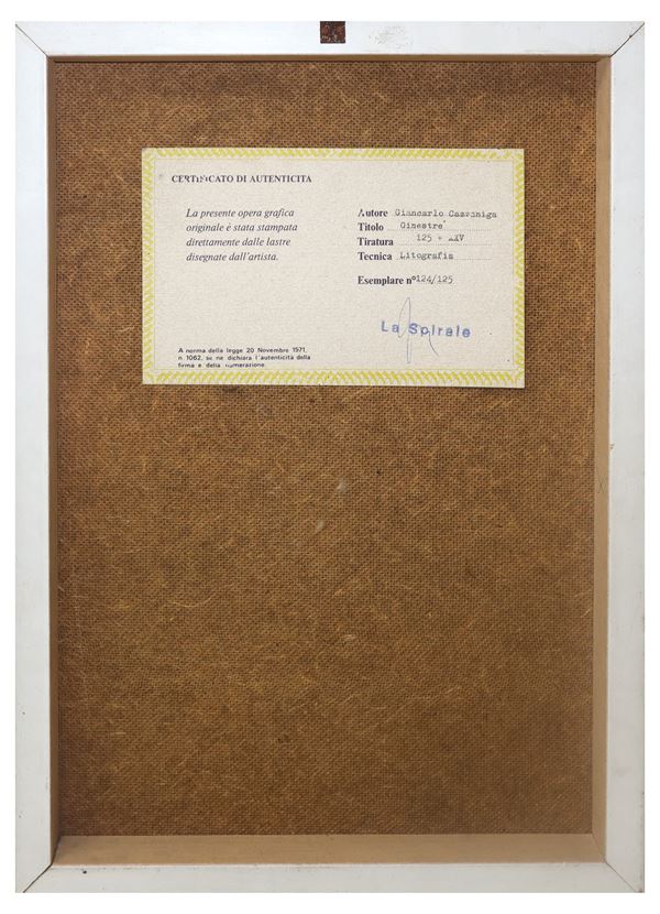 On the back certificate of authenticity Galleria "La Spirale" N. 124/125