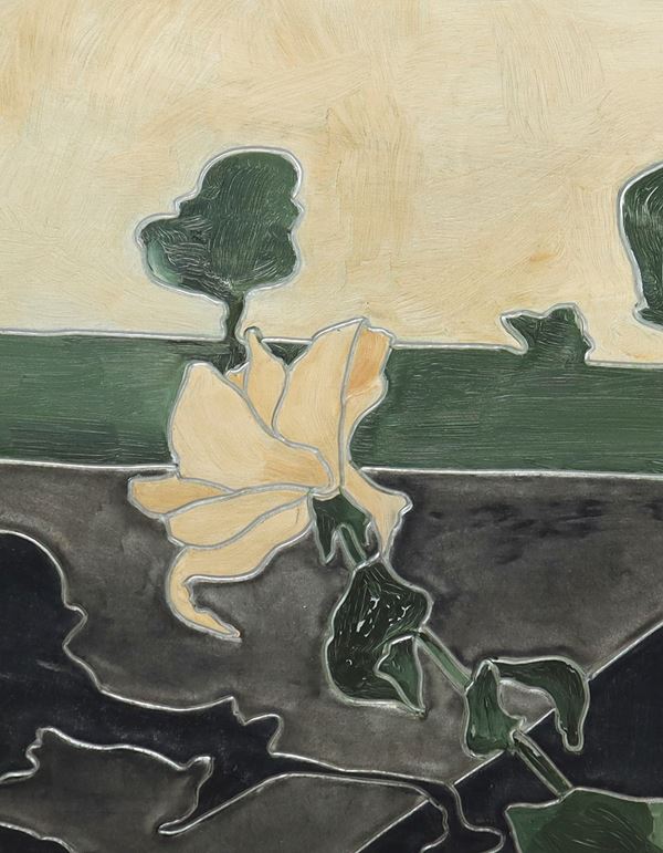 Landscape with trees and still life with flower, 1976
