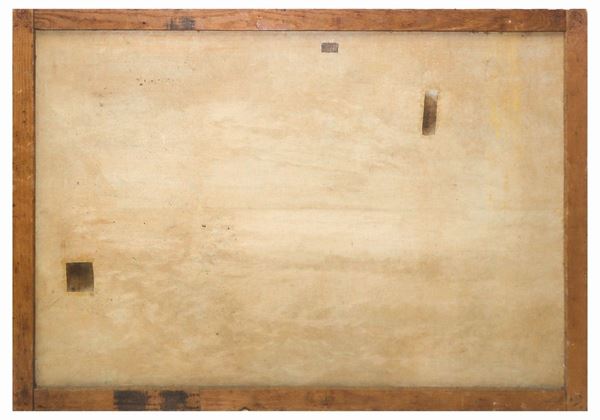 Signed lower left. Hole in the canvas, to be restored