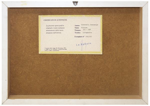 On the back certificate of authenticity Galleria "La Spirale" N. 124/125