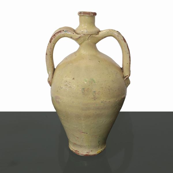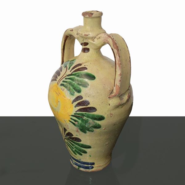 Caltagirone polychrome ceramic bummulo with yellow and green flower decoration