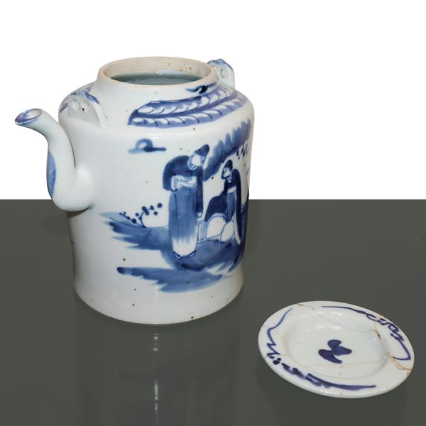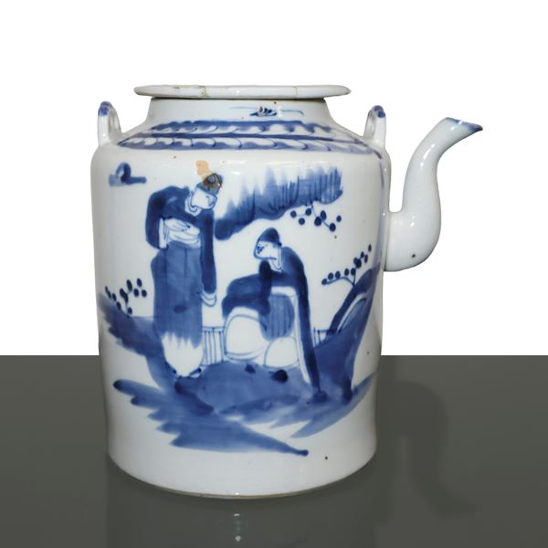 Coffee pot in Chinese porcelain painted blue on a white background, Late 19th century