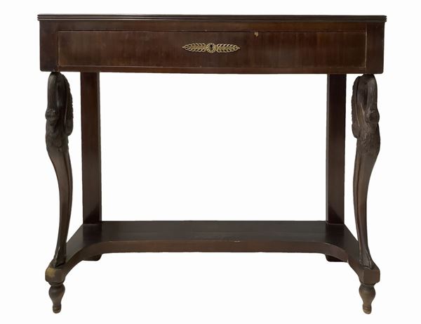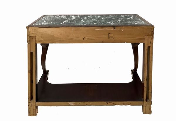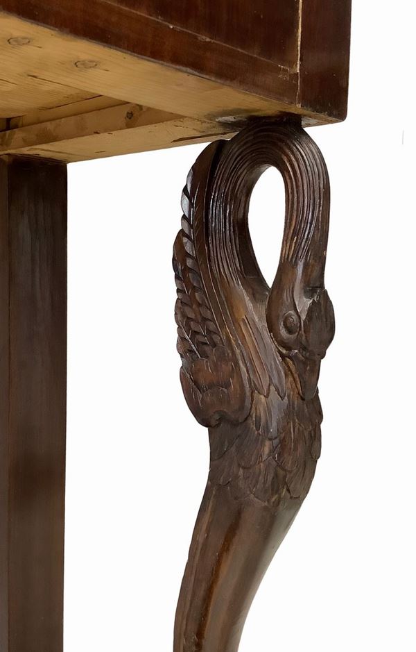 With inset green bardiglio marble to the top and front legs in the shape of swans