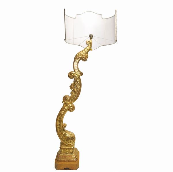 Large wooden fragment gilded with pure gold leaf adapted to a lamp, XVIII century