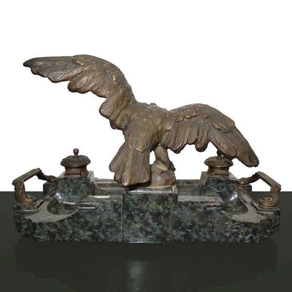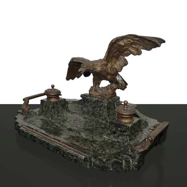 MARBLE AND BRONZE PATINATED METAL INKSTICK DEPICTING THE EAGLE