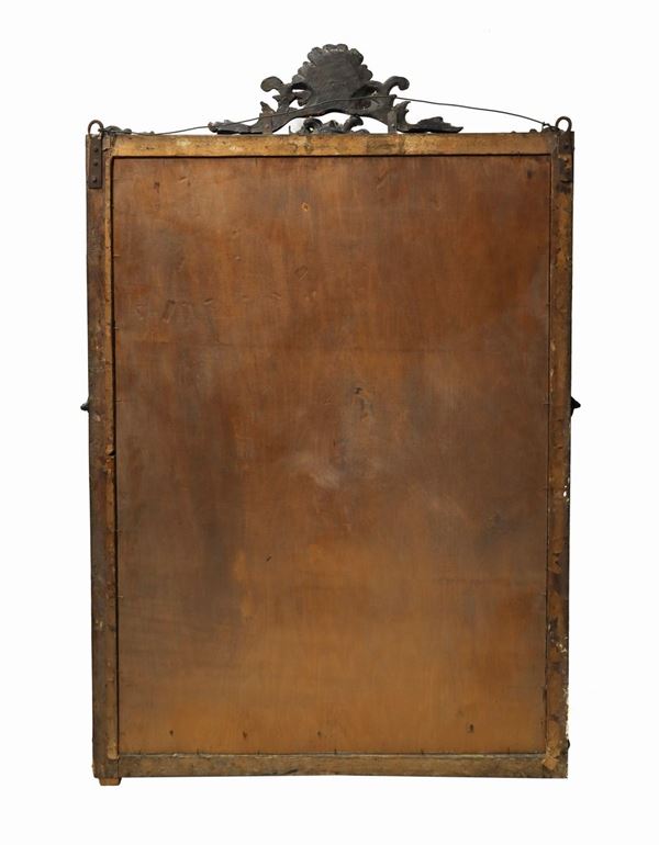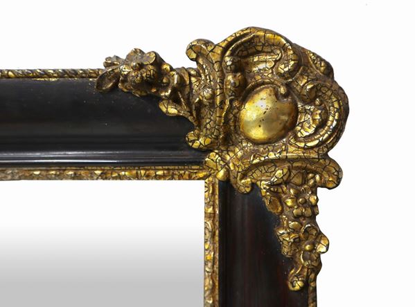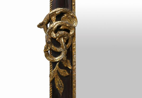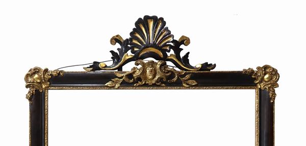 Mirror in lacquered wood with golden applications, Nineteenth century