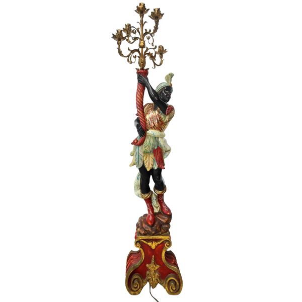 Moro Veneziano, large electrified 5-light candelabra., 20th century