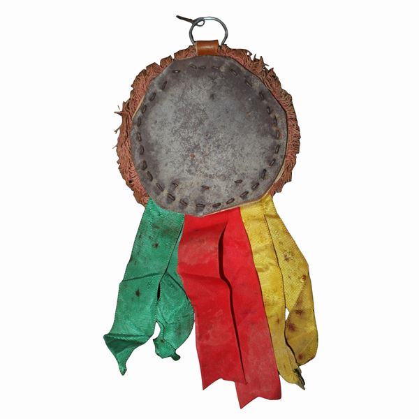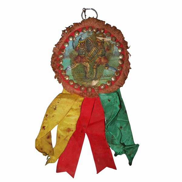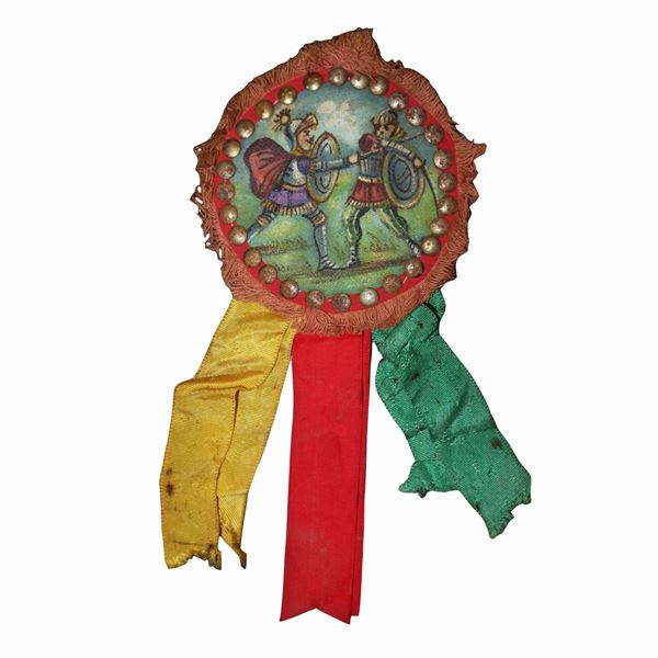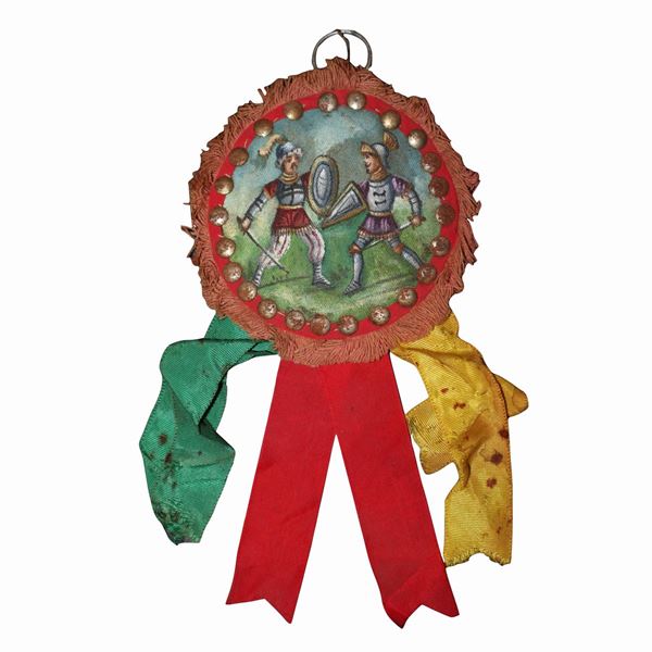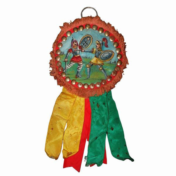 Paintings on canvas applied to leather with depiction of battles of the paladins of France against the Saracens, attributable to the painter Domenico Di Mauro