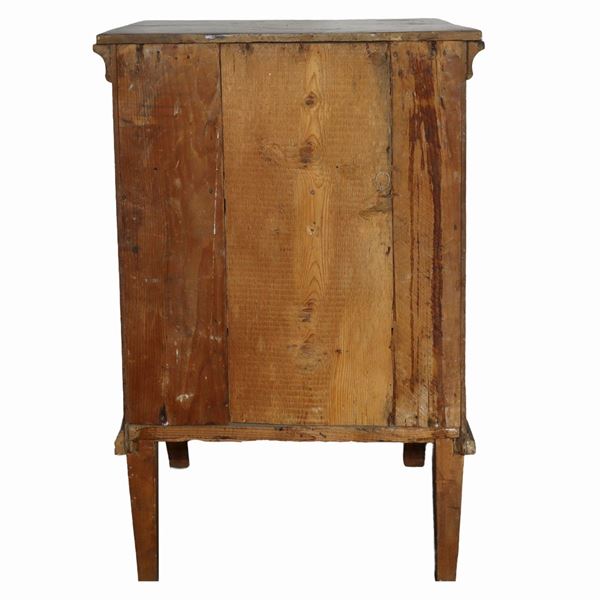 Night table with three drawers in walnut wood, Directory, late 18th century