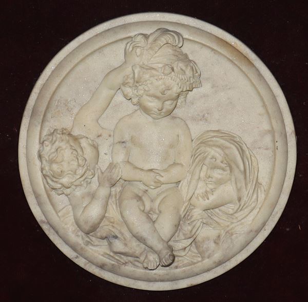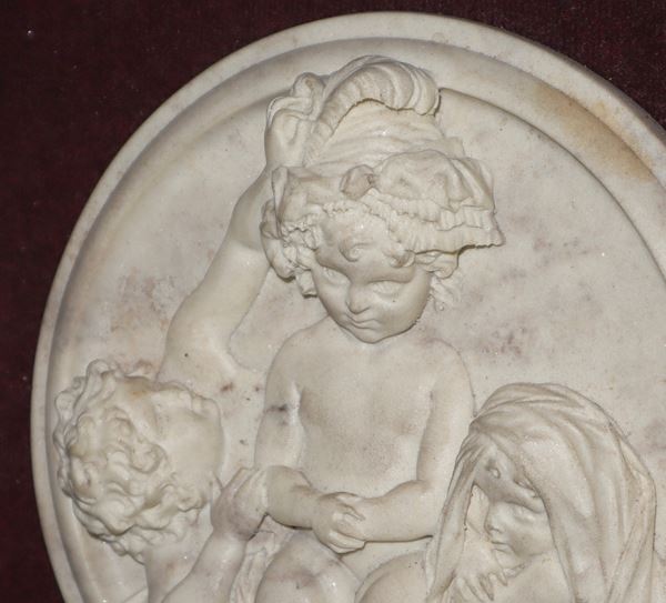 Oval bas-relief depicting a game of cherubs in a gilded frame