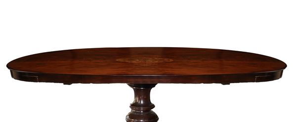 Oval center table in rosewood, foot with four spokes., nineteenth century