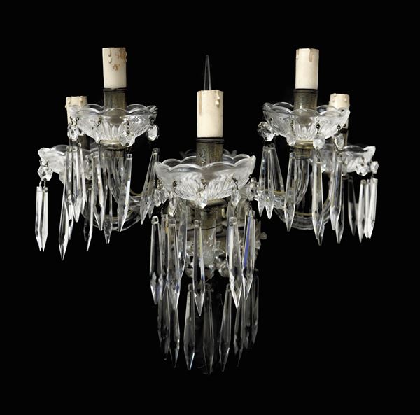 Pair of glass sconces with five hand-cut brindoli lights, Nineteenth century