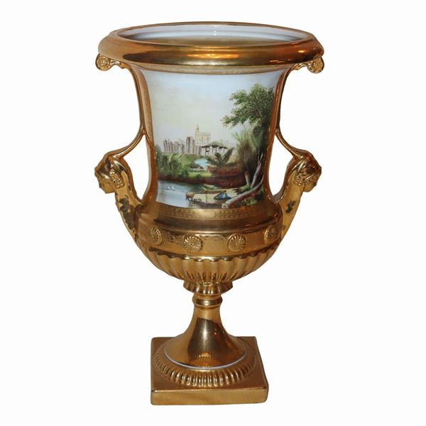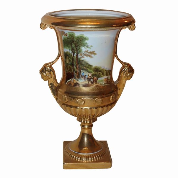 Pair of large porcelain crater vases, Empire style 20th century