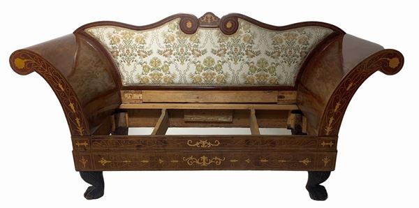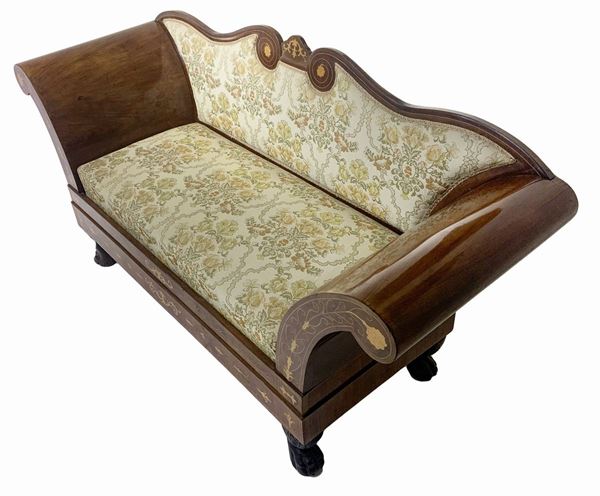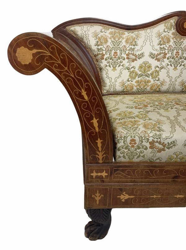 Pair of two-seater sofas with inlays, Nineteenth century.