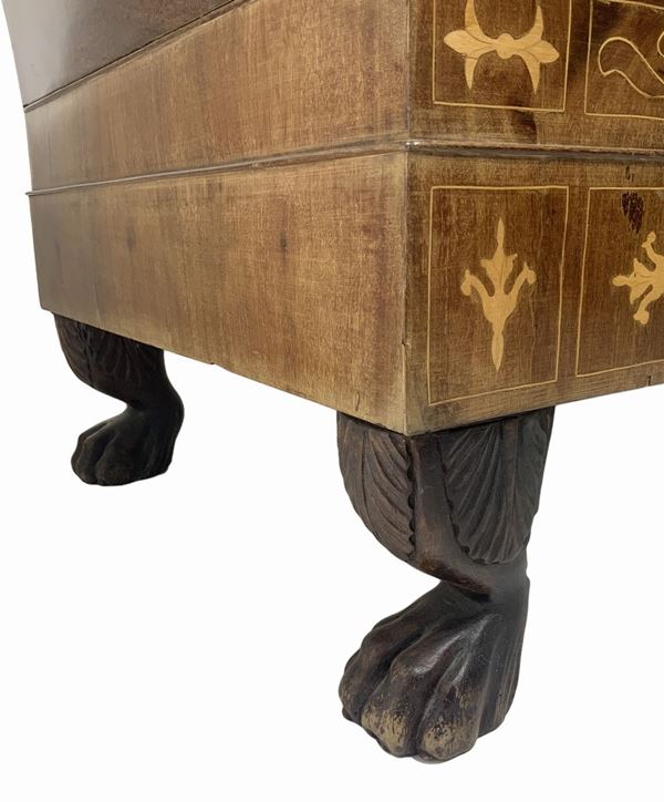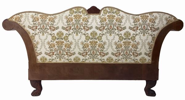 boxed armrests, feral feet in solid wood with leaf decorations. Sicilian cabinetmaking production. Charles X. Detachable seat. Excellent condition.