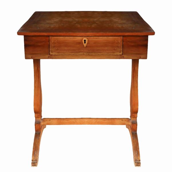 Pair of wooden tables with inlaid star in the center of the top., 19th century Sicily