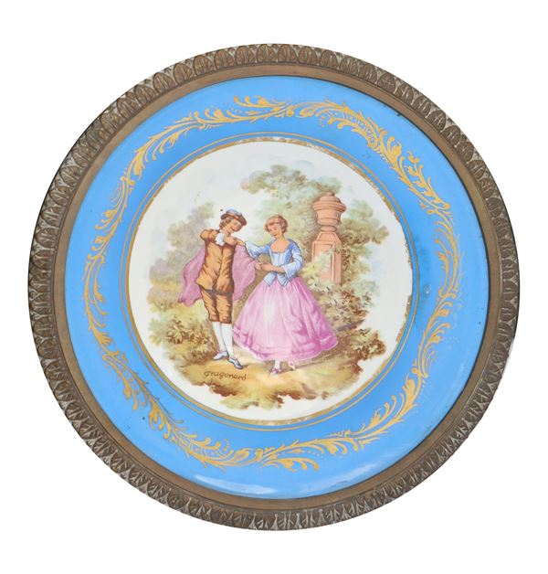 Porcelain cake stand with gallant scenes from Fragonard