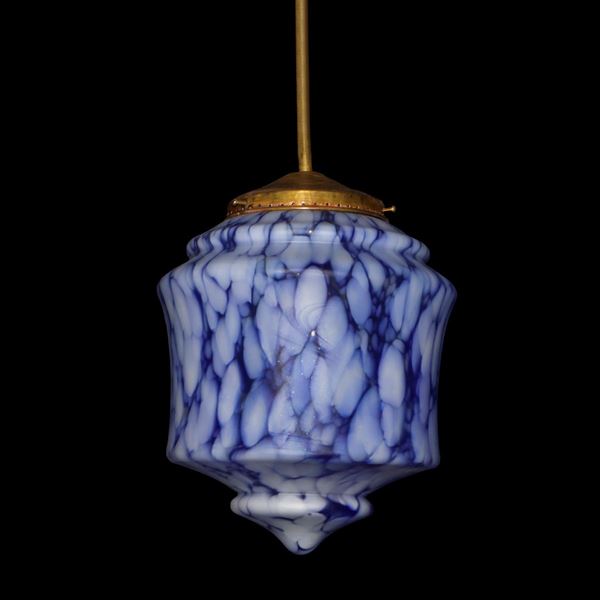 Single light chandelier in blue and white marbled Murano glass, Early 20th century