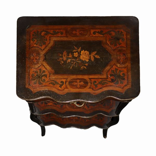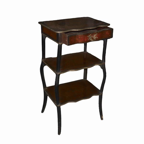Small etagere table with 3 shelves, with marquetry, nineteenth century