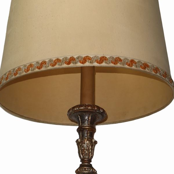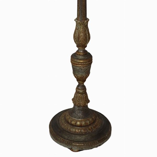 Standing candlestick in gilded and silvered wood, nineteenth century