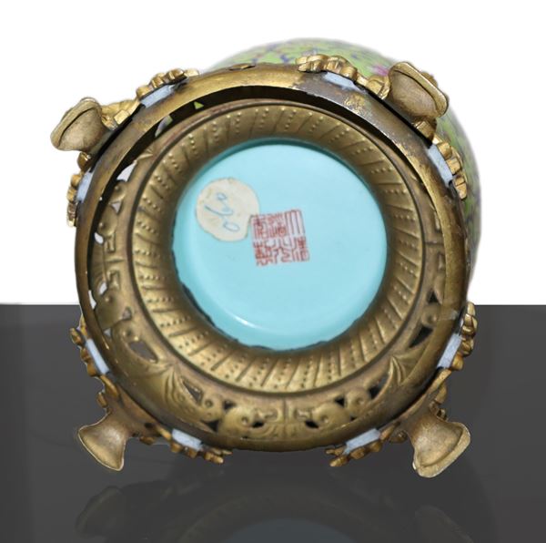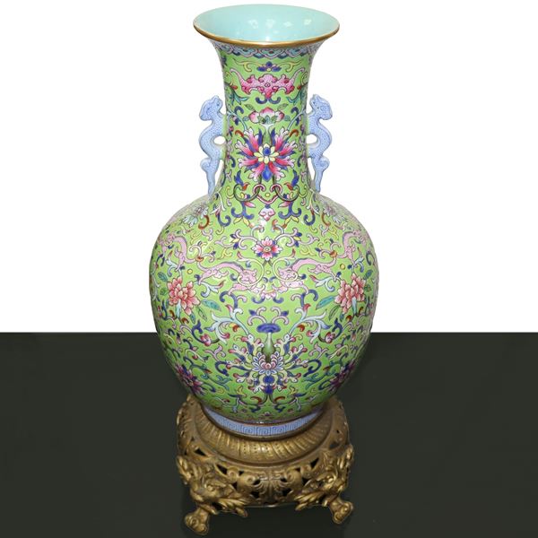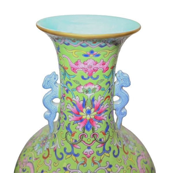 Vase with green background and flower design, 18th century Da Qing Dao Quan nian zhi