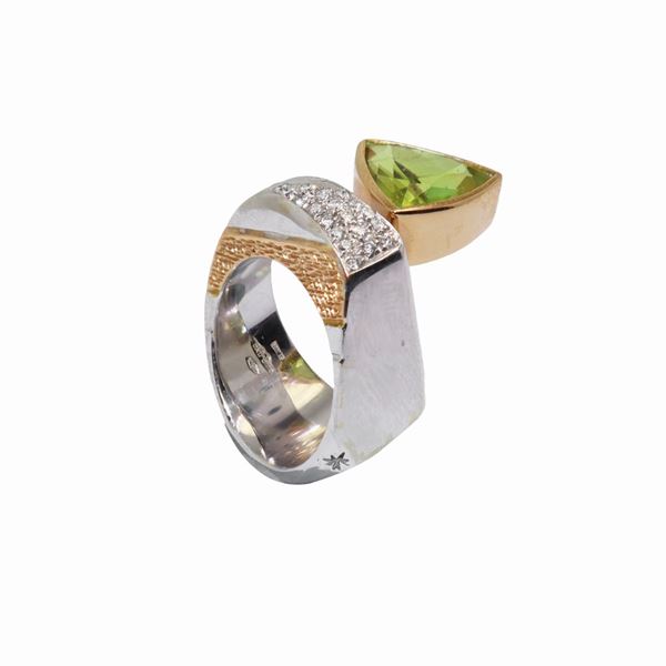 Elegant handcrafted ring with Peridot and Diamonds stone. With certification