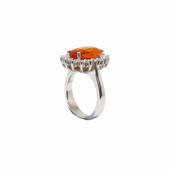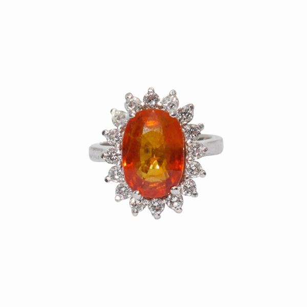 Ring with central orange Sapphire and round of Brilliants approx. 1.0 Ka