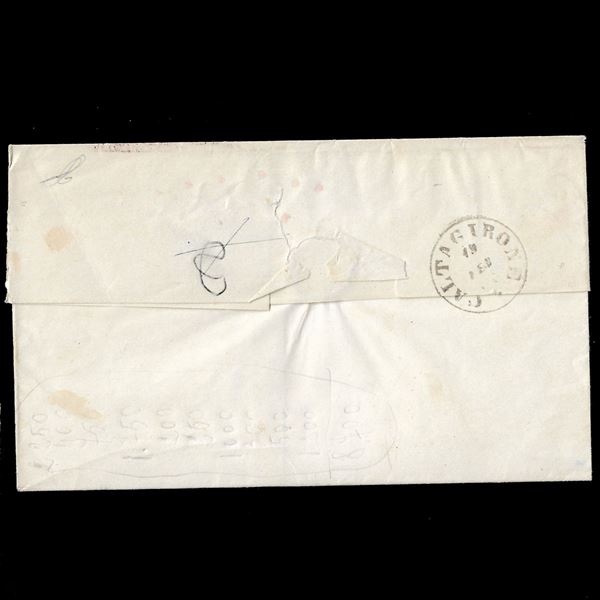 1863. Letter from Palagonia (P6) to Caltagirone stamped with a horizontal stripe of three dated 5th c. (Sassone n. L16)