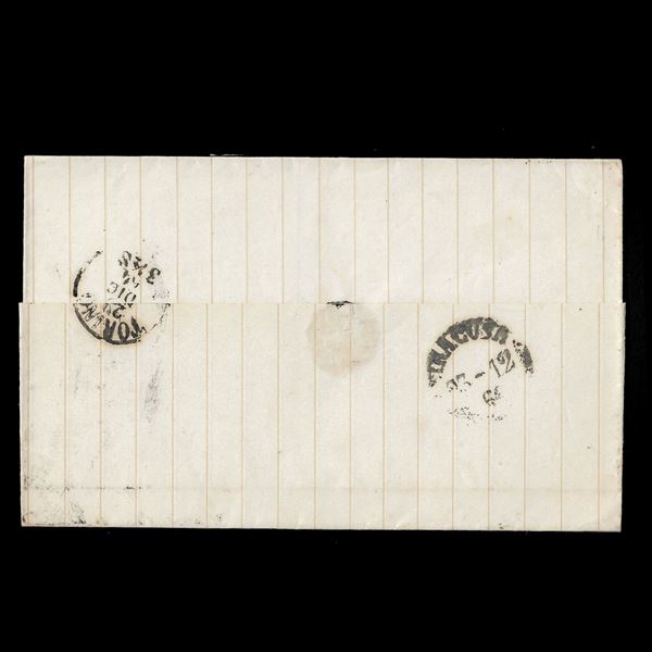 1864. Letter from Comiso (P.4) to Turin franked with 15 c. light blue (Sassone L.18)