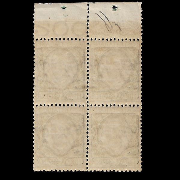 1901. 1 lire "Floreale" (Sass. N. 77). Block of four. Signature on the back on the margin of the sheet.