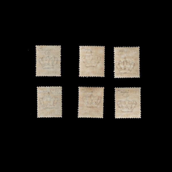 1913/25, commission service: "Cipher in a circle" series + overprinted series (Sass. N. 1/3 + 4/6). MNH. Raybaudi Cert.