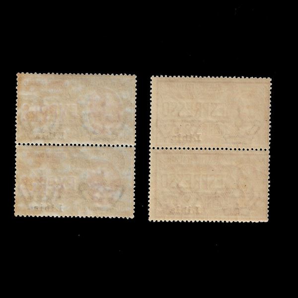 1915 c.25. c.30 Espressi (Sass. 1/2) vertical pair with 1st type overprint. New, never hinged.