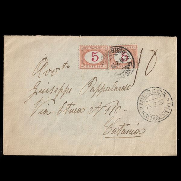 1920. Letter from Milocca to Catania dated 02/13/1920. Interesting postal process, fully described with expert certification attached. Zappalà Cert.