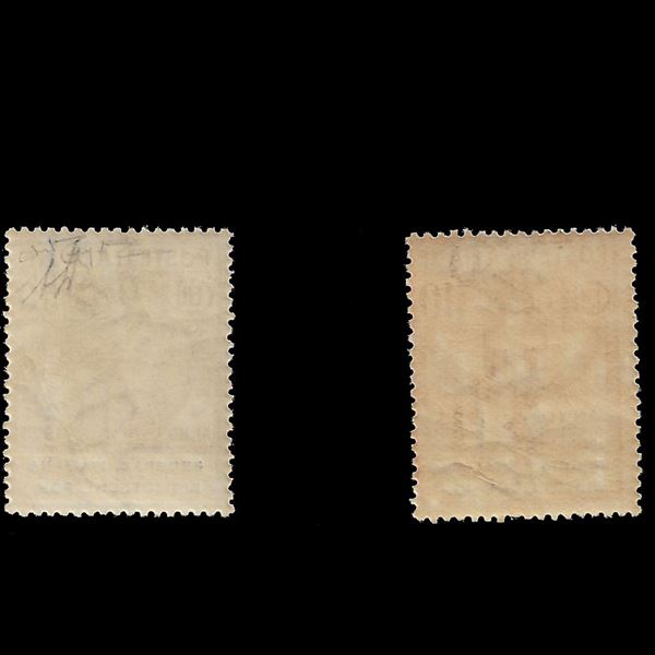 1924. Parastatal bodies. 50 c. violet from the series "Italian Federation of Pop. Libraries", without a period after "Pop." (Sass. 36b) + 10 c. pink (Sass. 34b). The 50th c. violet bears expert certification.