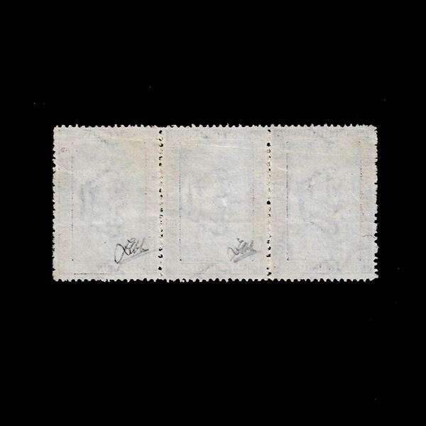 1928, Emanuele Filiberto, 20c. Dent. 13 3/4 (Sassone 230) horizontal stripe of 3, one defective. Together to examine. (Cert. Zappalà)
