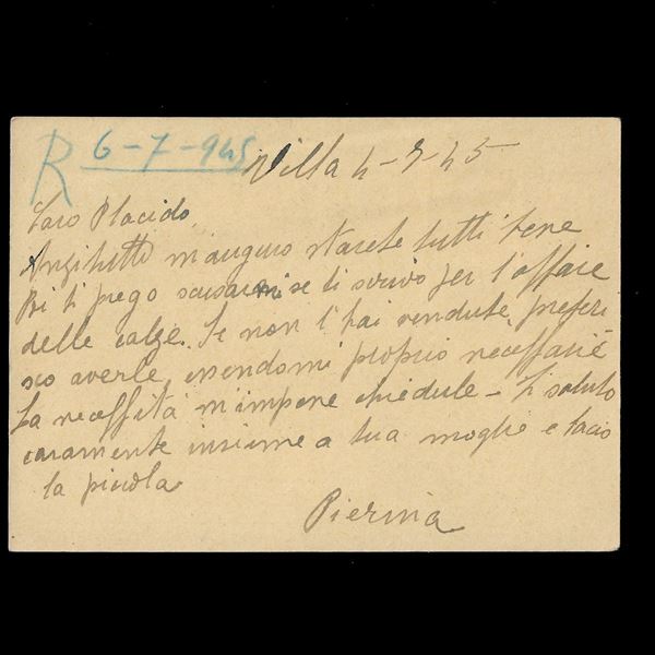 1945. 15 cent postal stationery. Green "Vinceremo" type (Filigrano C97) used in emergency, shipped from Modica to the city on 5/7/1945. Zappalà Cert. Interesting frankings with cufflinks, extensively described by expert certification.